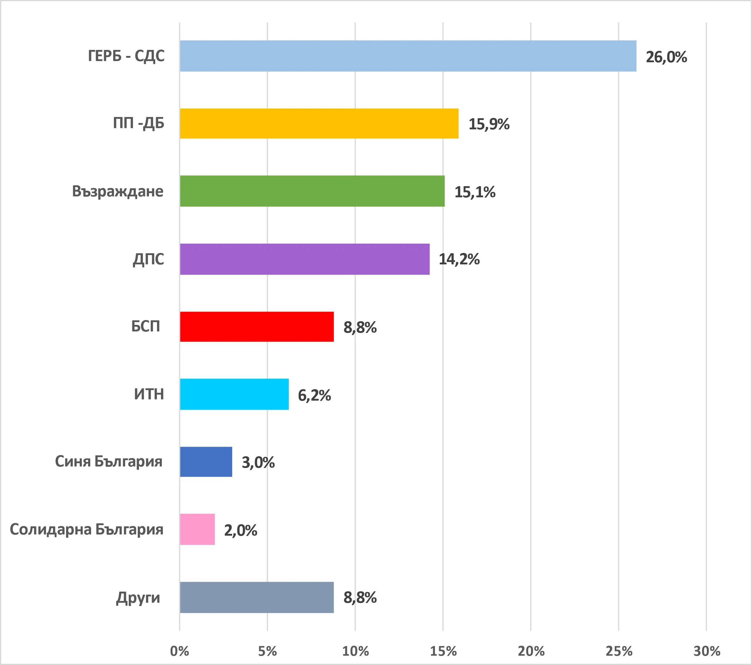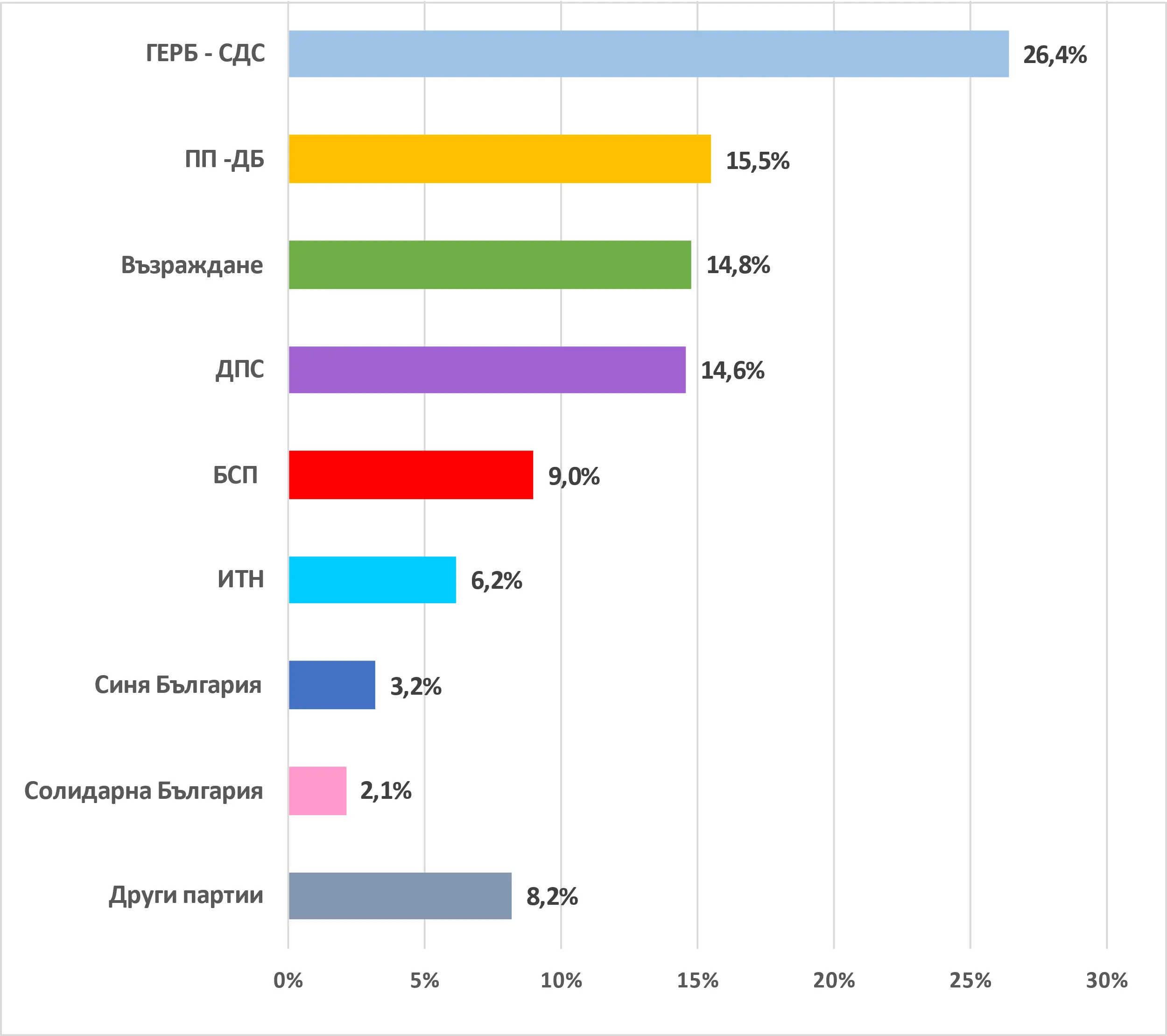 Електорални нагласи за парламентарните избори към 4 юни 2024г.