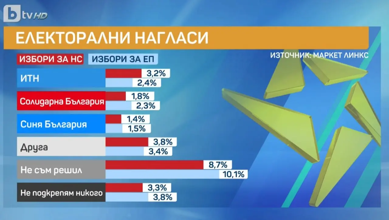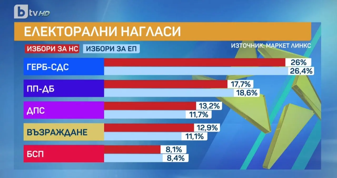 „Маркет Линкс“: Над 8% разлика между ГЕРБ-СДС и ПП-ДБ на парламентарния вот