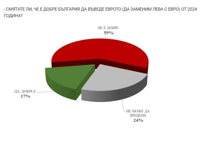 Както по отношение на влизането в еврозоната, така и по въпроса за предоставянето на оръжия за Украйна обществото като цяло е подчертано негативно настроено. Данните показват, че двете теми тясно се преплитат. От едната страна са последователните „евроатлантици“ (около 20 %) – които искат както да предоставяме оръжие за Украйна, така и да въведем веднага еврото. От другата страна са „евроатлантико скептиците“ (около 60%) - които смятат, че България, в момента, трябва да се дистанцира от подобни движения (както по отношение на оръжията, така и по отношение на еврозоната).