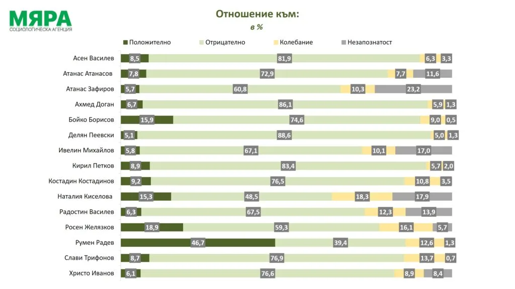 Това са част от изводите и хипотезите от национално представително изследване от независимата ежемесечна програма „лице в лице“ на новата социологическа агенция „Мяра“, основана наскоро от екипа на Първан Симеонов. Изследването е проведено с таблети между 6 и 16 февруари 2025 г. сред 803 пълнолетни български граждани. Данните все още не показват сериозна динамика спрямо резултатите от отминалите избори. Тепърва ще оказва влияние текущият политически живот.