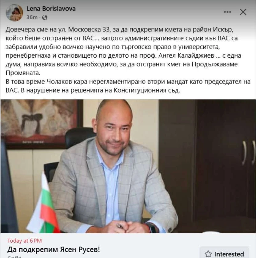 Кметът на район „Искър“ Ясен Русев: Утре ще има протест в моя защита – ще има такова организирано мероприятие. (…)