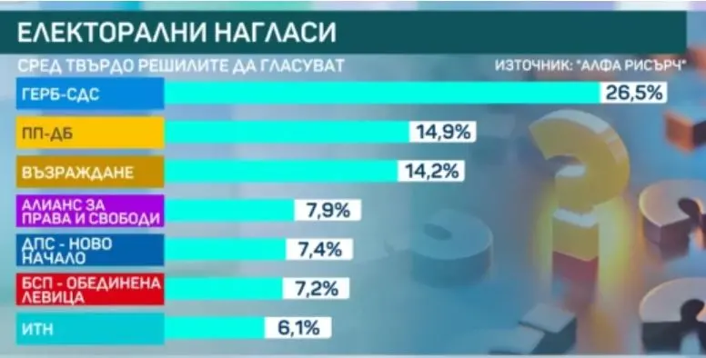 Алфа Рисърч: ГЕРБ-СДС е категоричен лидер, ПП-ДБ и „Възраждане“ спорят за второто място
