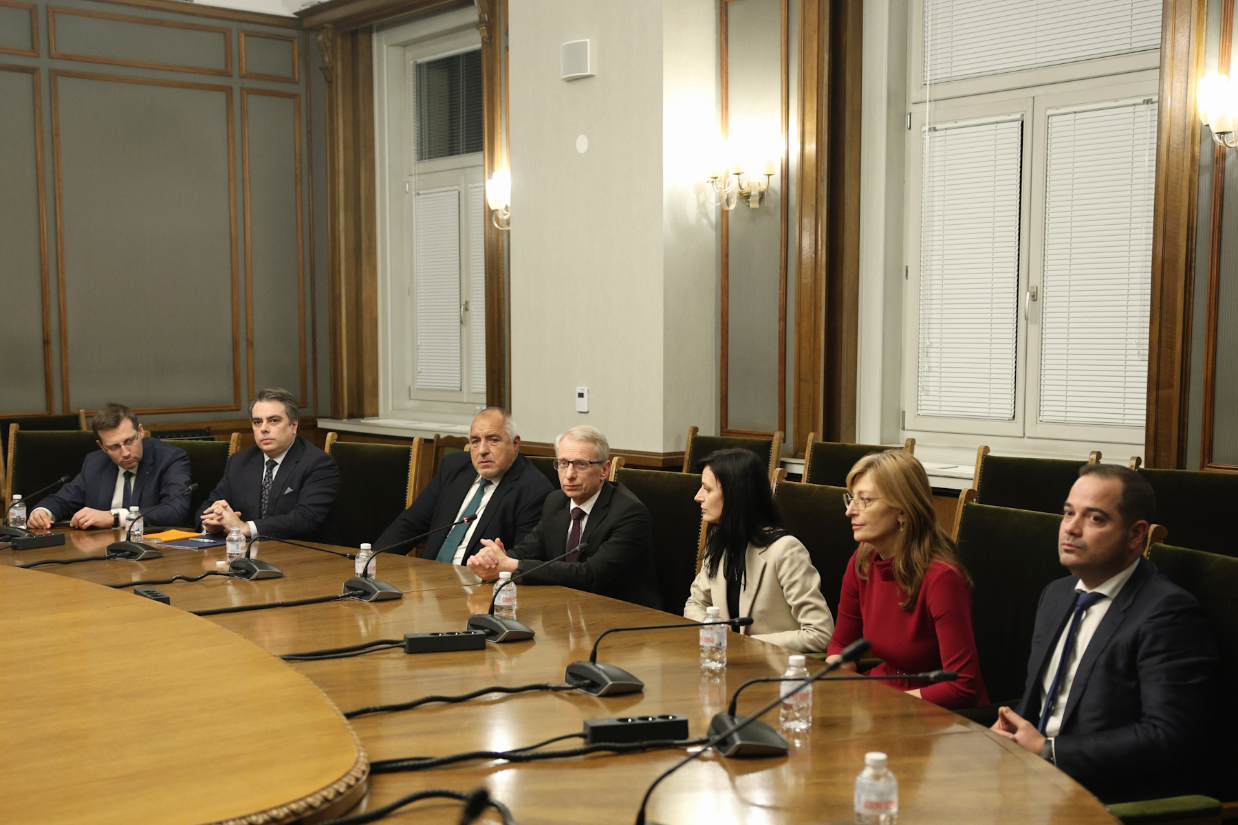 Работно съвещание на тема Шенген и Еврозоната събра на една маса председателя на Комисията по външна политика Бойко Борисов, министъра на финансите Асен Василев, премиера Николай Денков, вицепремиера Мария Габриел, министрът на вътрешните работи калин Стоянов и депутати в сградата на Народното събрание.