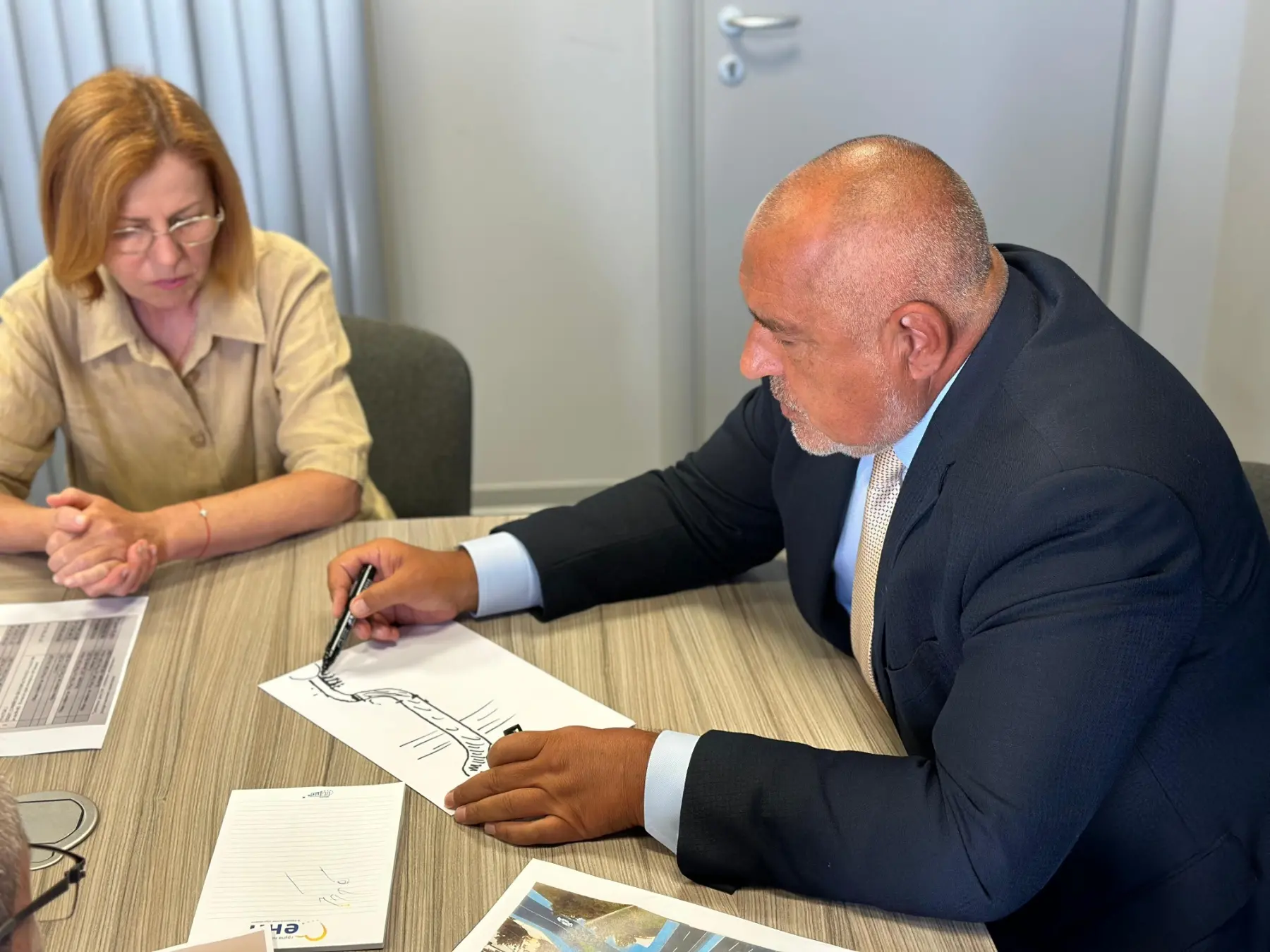 "Ако се стигне до стария вариант, с много сложното съоръжение, това е минимум 2 г. С голям зор година и половина. Представете си бул. "Борис Трети" да бъде затворен, плюс околовръстното, с това движение и международния трафик. Това не работи", каза Борисов и показа "опростено и скицирано" как си представя новия план.