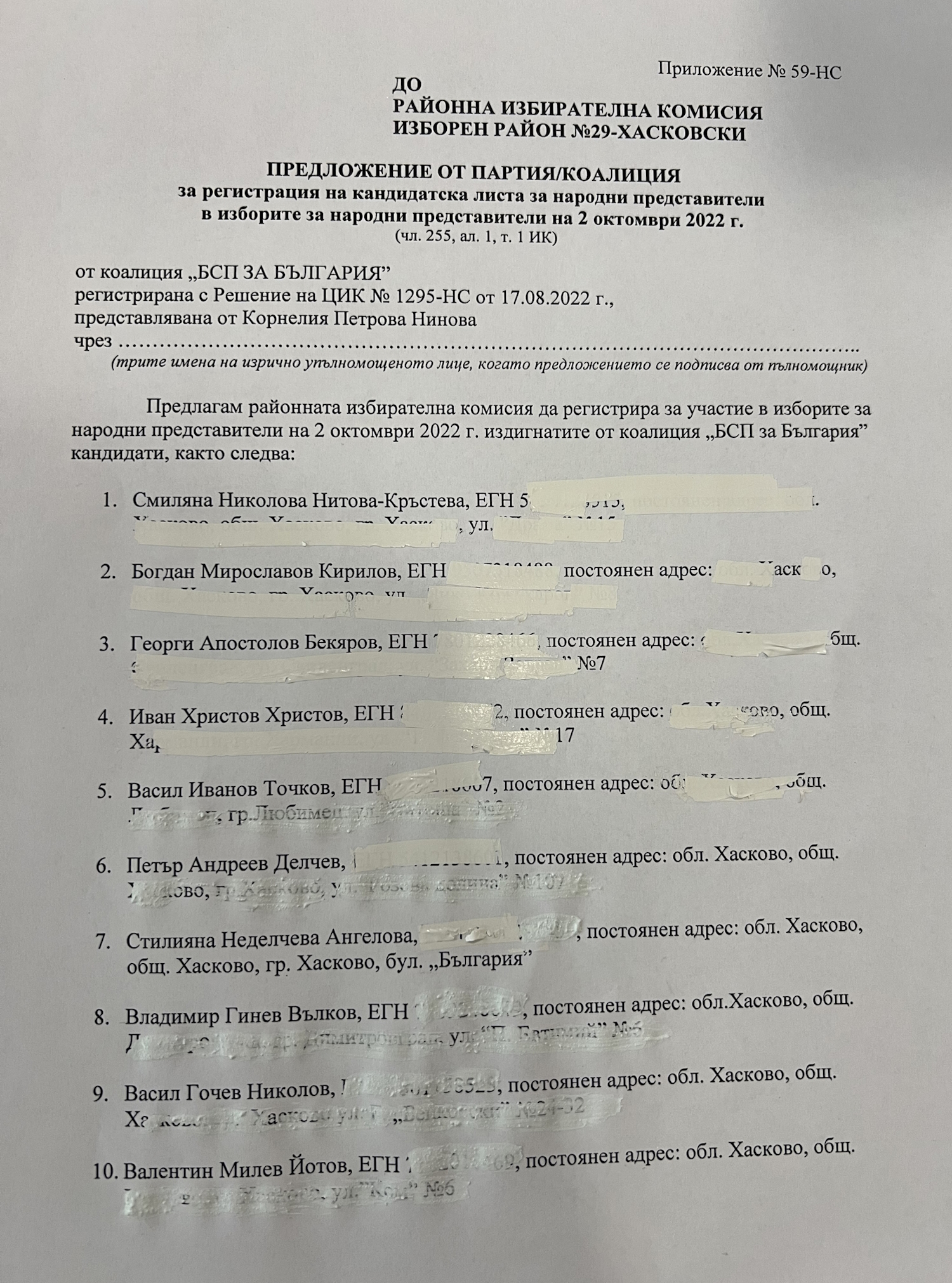 Това е лъжа и е част от компроматните атаки срещу БСП. Без документи, при положение, че листите са на сайта на Централната избирателна комисия и са публични, възмущават се от партията. Те прилагат официалната листа от страницата на ЦИК и заявлението до Районната избирателна комисия, от които е видно, че такова лице не фигурира в тях.