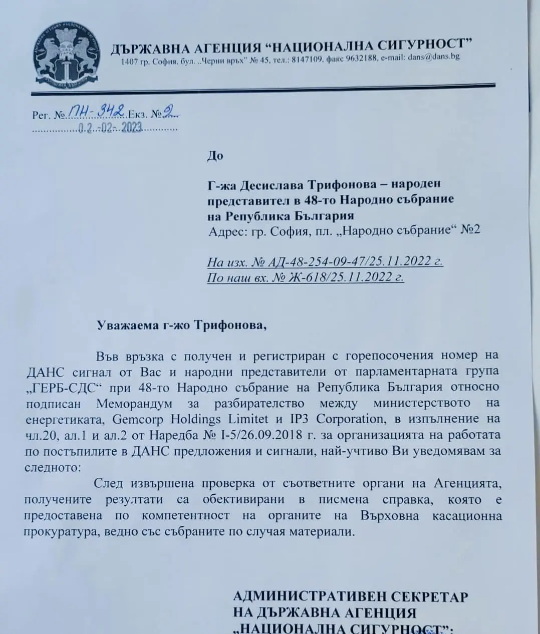 На база на събраните доказателства и материали, ДАНС е сезирала Върховна касационна прокуратура.