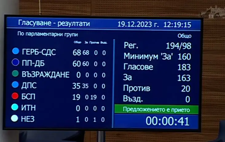 Въпреки острите дебати решението беше прието с мнозинство от 163 гласа "за", 20 гласа "против" и без "въздаржал се".