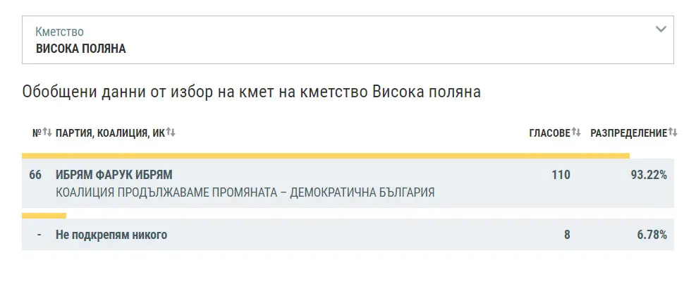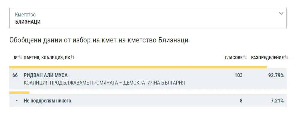 Кметът на ПП/ДБ Нуридин Исмаил печели безапелационно със 79.16%, общинарите на коалицията са избрани с 74.74% гласа.