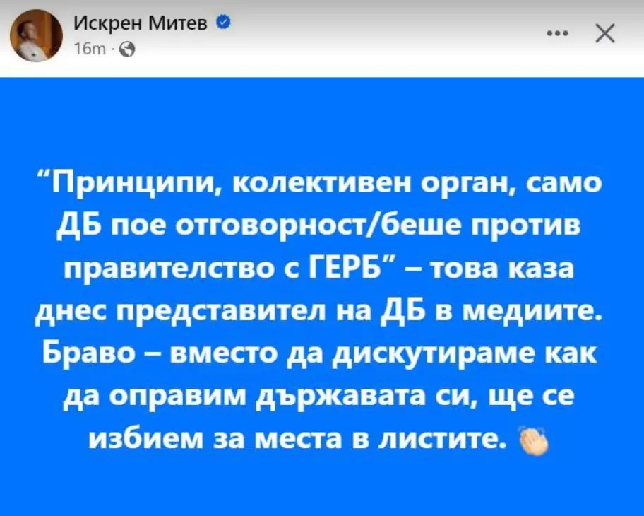 Не закъсня и отговор от страна на ПП, според които ще се избият за листи. Мъжът до Лена Бориславова пък я защити като написа, че „достойнството или го имаш, или го нямаш“.