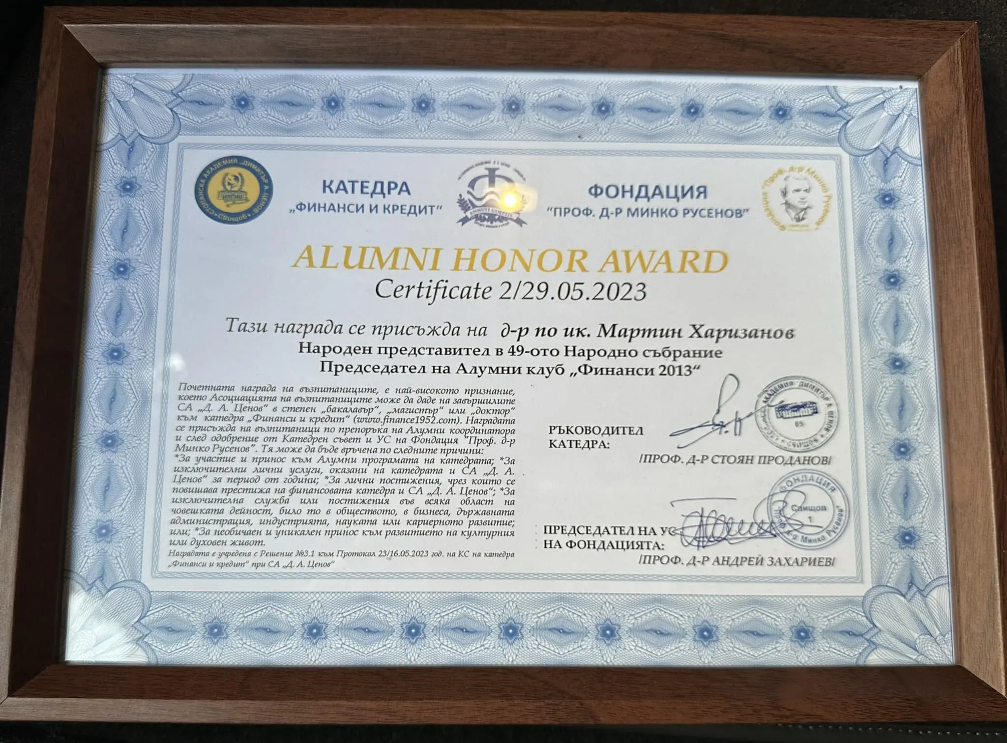 Мартин Харизанов с почетна награда и докторска степен от СА „Д.А.Ценов“ Свищов