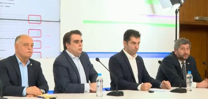 „Всички партии в коалицията са взели решение, че няма да подкрепи правителство с мандат или участие на политическа партия ГЕРБ“, това обяви Асен Василев в началото на първата обща пресконференция на ПП-ДБ след изборите.