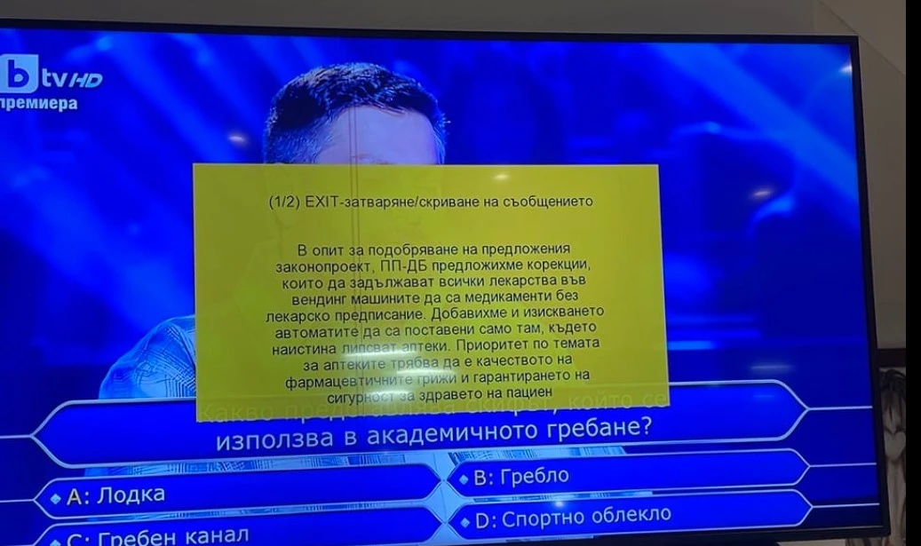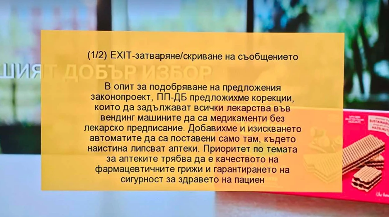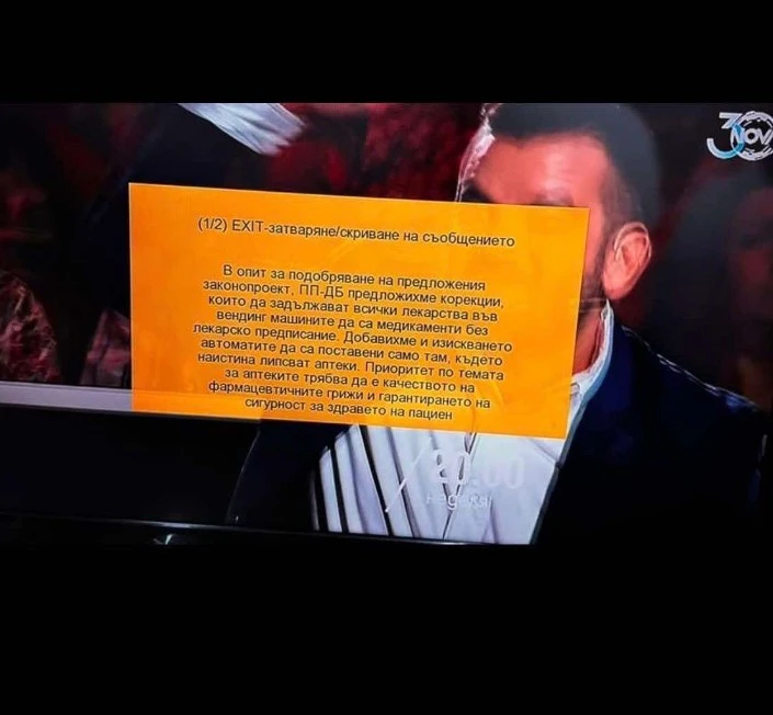 Типично по Кашпировски, докато си гледат телевизията хората виждат съобщение от ПП-ДБ със следния текст: