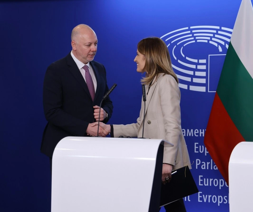 Председателят на Европейския парламент Роберта Мецола от своя страна определи настоящата визита на премиера Желязков като знак за ангажимента на България към европейския път и готовността на правителството да работи за приемането на еврото. Мецола поздрави Желязков за положените политически усилия и отбеляза, че реформите, макар и трудни, водят до значими резултати. „След 13 години труд, България зае полагащото й се място в Шенгенското пространство. Освен това страната ви е в последните етапи на подготовка за присъединяване към еврозоната – крачка, която ще я приближи още повече до сърцето на Европейския съюз“, посочи още председателят на Европейския парламент. Мецола подчерта подкрепата на Европейския парламент за амбициозната програма на българското правителство и изрази желание скоро да посети България.