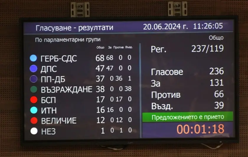 „Против“ гласуваха 66 от ПП-ДБ, БСП, „Величие“ и независимия Калоян Методиев, а „Възраждане“ се въздържаха. В подкрепа на кандидатурата на Назарян гласуваха от ИТН.