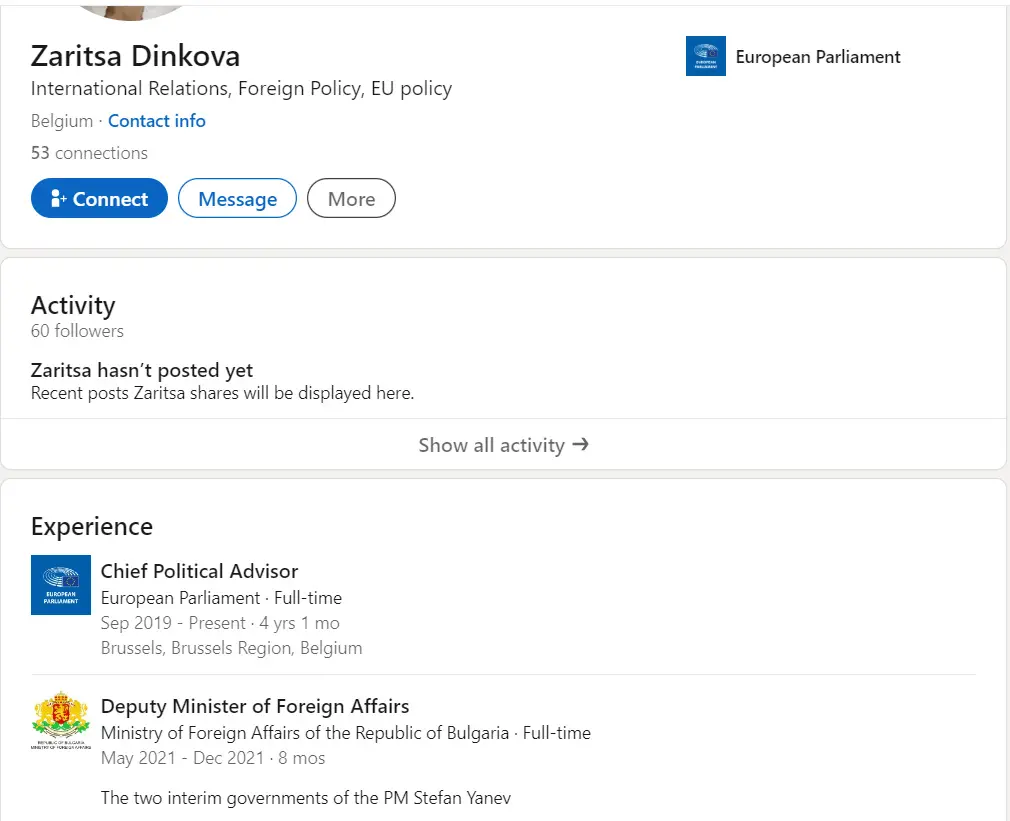 Както ви разказахме още на 20 юни, това се потвърждава и от информацията на Динкова, която тя само попълва в своя профил в Linkedin. Това дори не е първи случай, в който дамата се връща в България без да прекъсва кариерата си в Брюксел.