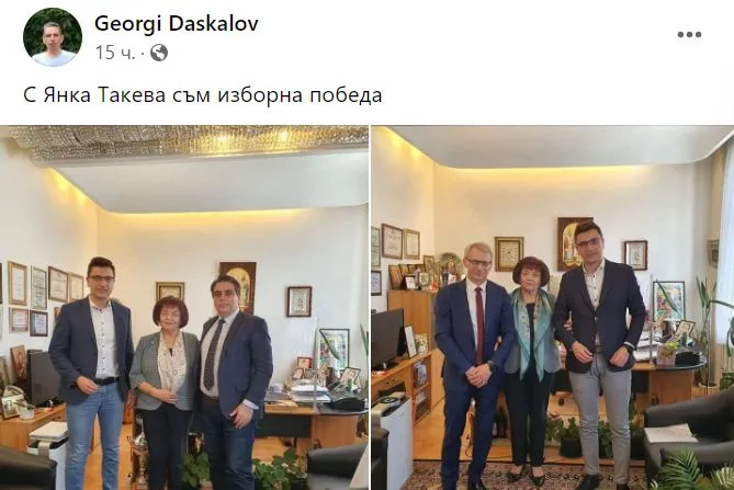 Председателят на Синдиката на българските учители (СБУ) Янка Такева предизвика недоумение и объркване сред потребителите на Фейсбук, след като предизборно се срещна с кандидатите за народни представители от ПП-ДБ – Асен Василев, Венко Сабрутев и академик Николай Денков, с което даде ясна заявка, че подкрепя коалицията.