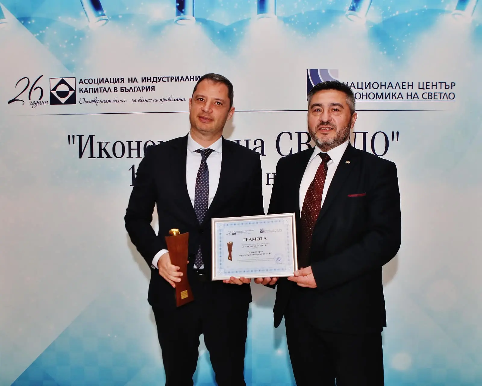 Кандидат-депутатът и бивш министър на икономиката и енергетиката от ГЕРБ Делян Добрев печели голямата награда „Икономика на светло“ на Асоциацията на индустриалния капитал в България/АИКБ/.
