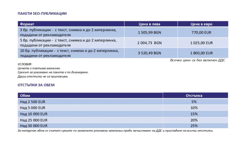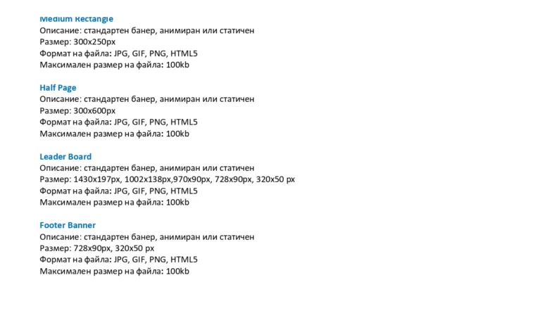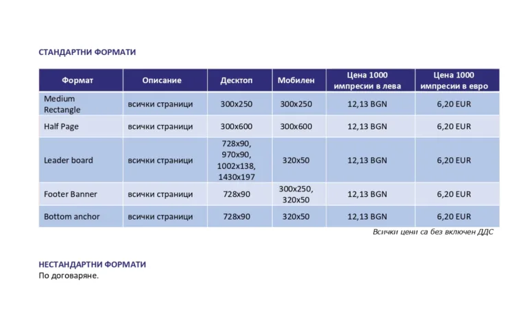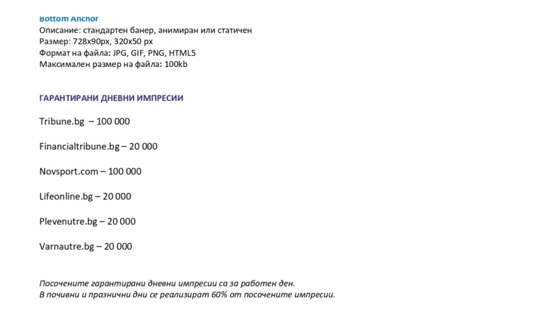 За реклама в Tribune.bg, Financialtribune.bg, Novsport.com, Lifeonline.bg, Plevenutre.bg, Varnautre.bg