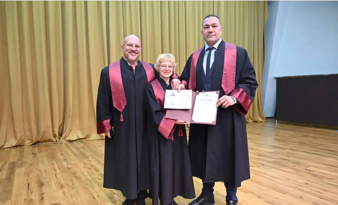 Пулев получи дипломата си от ректора на УНСС проф. д-р Димитър Димитров на тържествена церемония в учебното заведение.