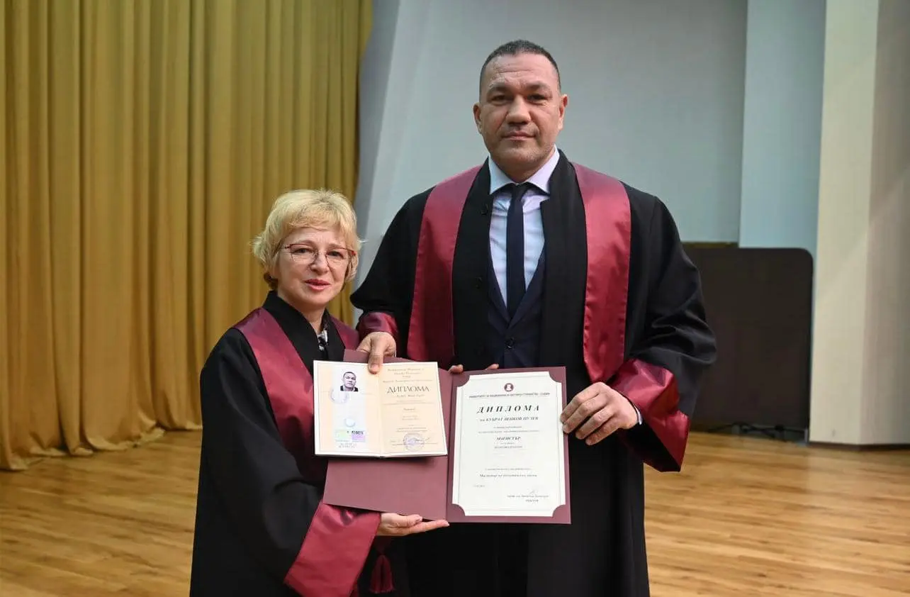 Боксьорът Кубрат Пулев вече официално е магистър по Политология. Това съобщи самият той в социалните мрежи, като качи снимки от събитието.