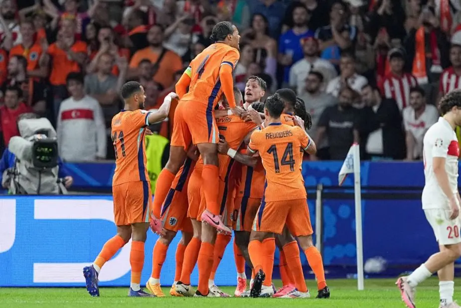 Нидерландия сътвори обрат в 1/4-финала с Турция, след като изоставаше с един гол на почивката, но гол на Стефан де Фрай и автогол на Мерт Мюлдюр класираха тима от Ниската земя на 1/2-финал.