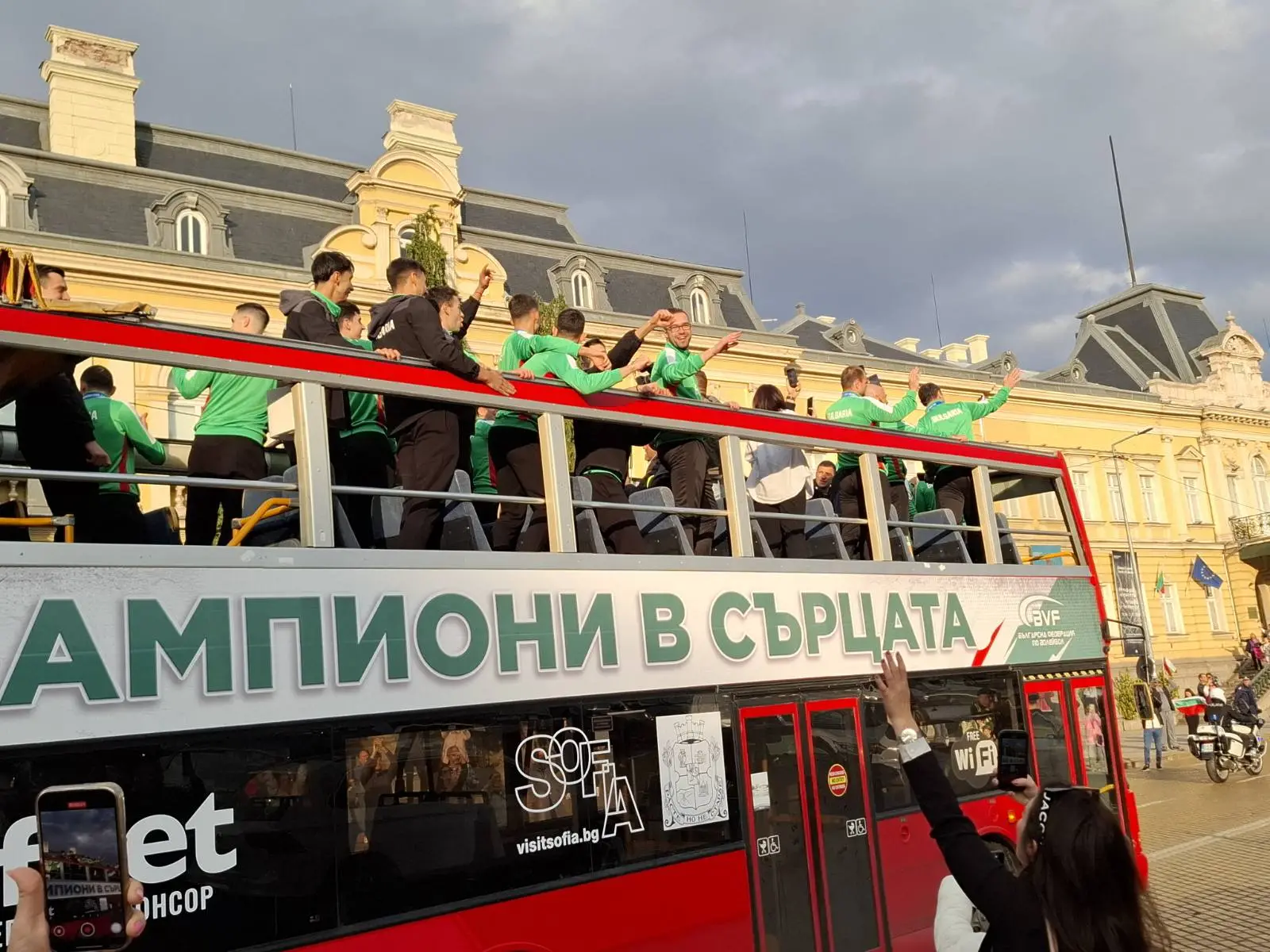 Някъде по това време стартира и шампионския парад, устроен за момчетата на Бленджини. "Любовта на хората е едно от най-хубавите неща", обяви специалистът. С открит автобус с надпис "Шампиони в сърцата", те взеха разстоянието от Студетски град до крайната си цел - площад „Александър Невски“, за да оберат засужените аплодисменти на хората. По пътя бха отворени няколко бутилки шампанско. Около тях свистяха клаксони на разминаващите ги автомобили.
