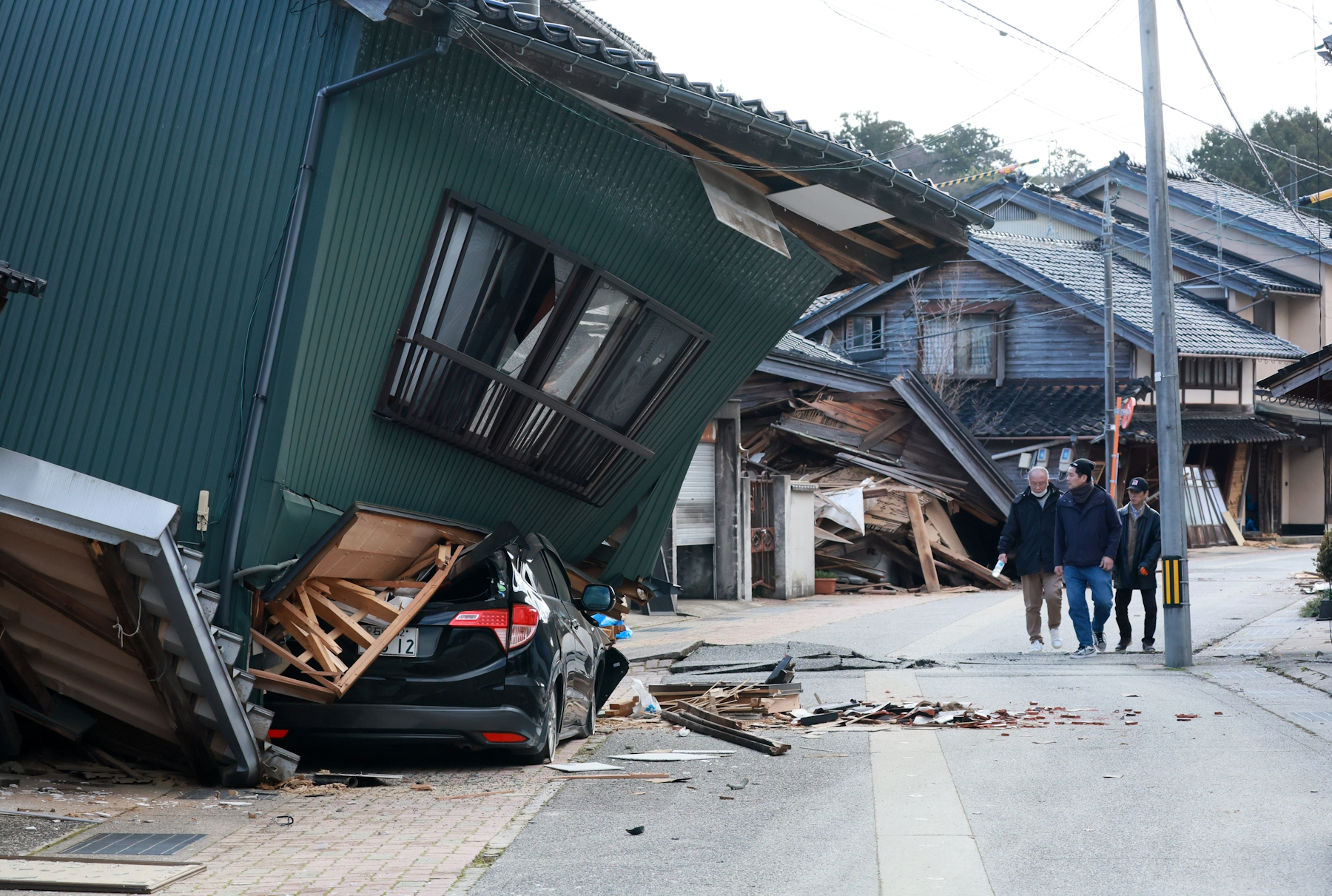 Земетресението с магнитуд 7,6 по скалата на Рихтер удари в ранния следобед на 1 януари и срути хиляди сгради. Японската армия се включи в спасителната операция, като започна да раздава на хората храна, вода и одеяла. Властите предупредиха, че ще има вторични трусове в продължение на седмица.