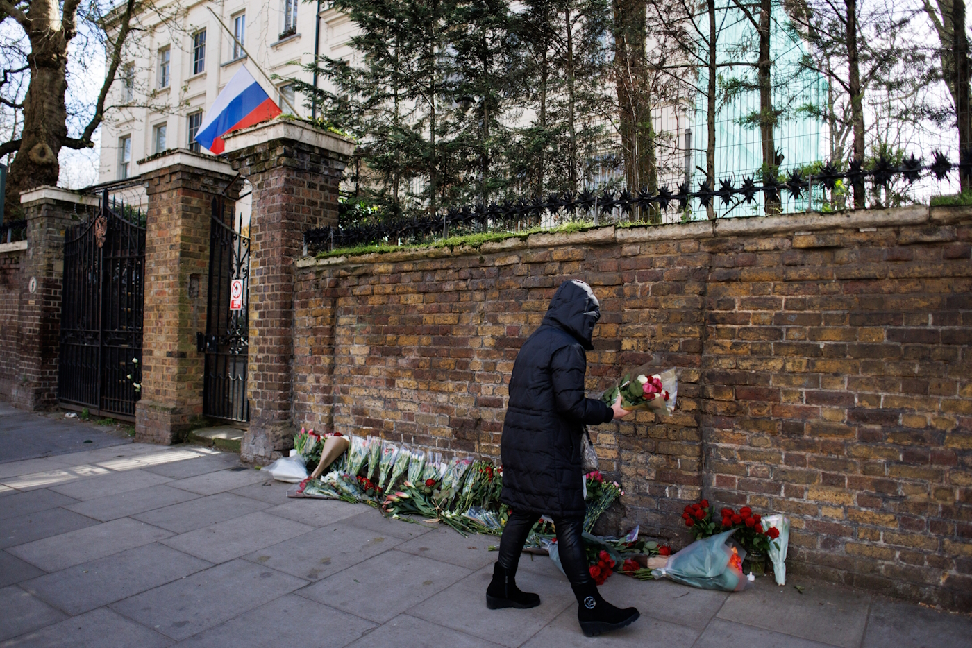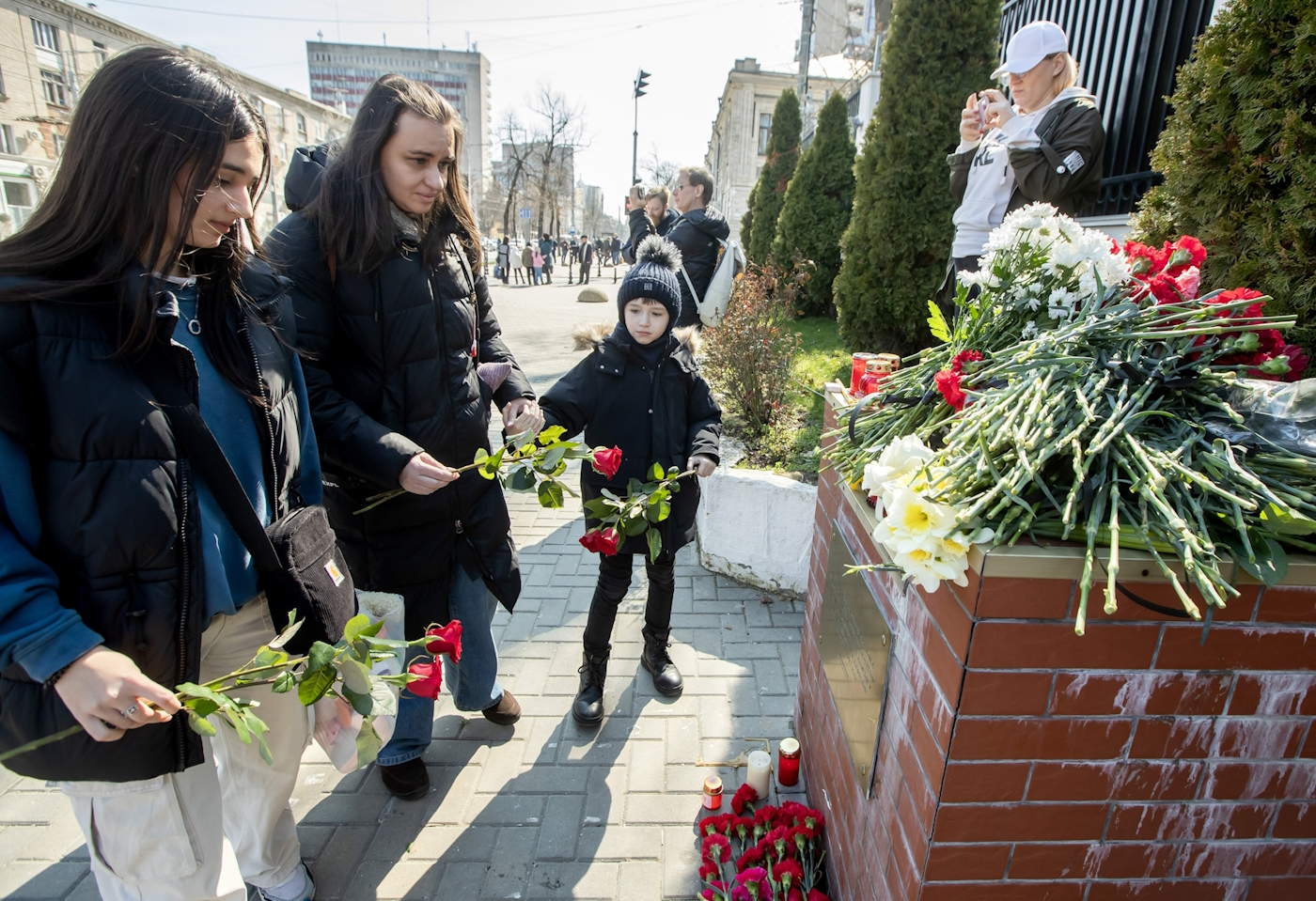 Хората по целия свят отдават почит на жертвите на нападението в концертната зала в Москва като полгат цветя пред посолства и сгради на Руската федерация.