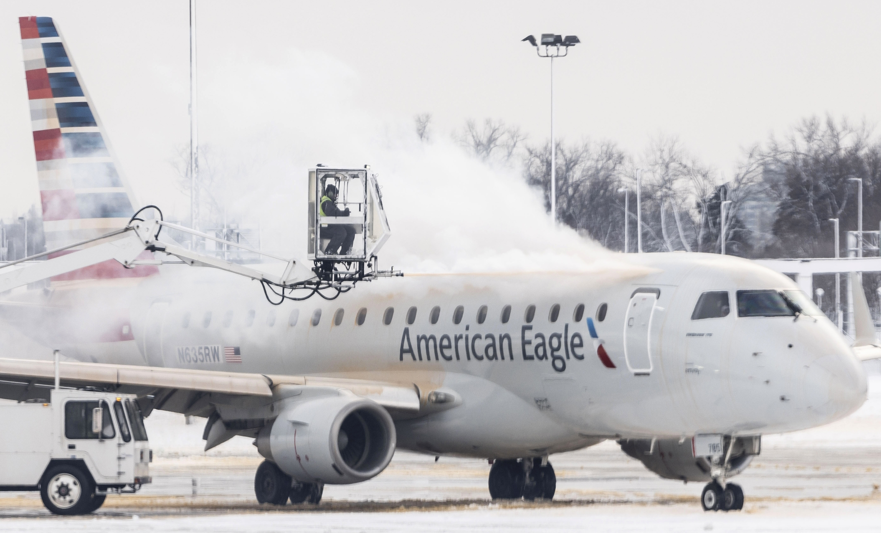 В Чикаго самолетите на международното летище О'Хеър бяха приземени за повече от два часа. Времето е прекъснало повече от 6500 полета в цялата страна до късния следобед, включително много в Далас и Канзас Сити.