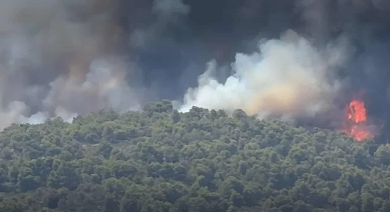 Голям пожар край Вурвуру: Евакуация в посока Никити, огънят обхвана борова гора (ВИДЕО/СНИМКИ/ОБНОВЕНА)