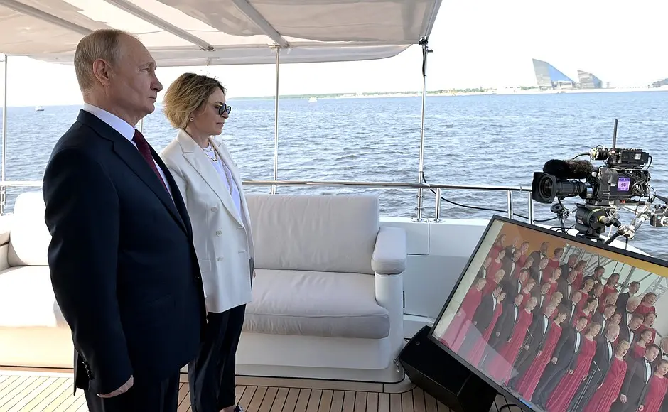 Под зоркия поглед на Путин, който беше на борда на яхтата "Охта" и в компанията на Елена Илюхина, заместник генерален директор на "Газпром нефт" и генерален директор на "Газпром лахта".