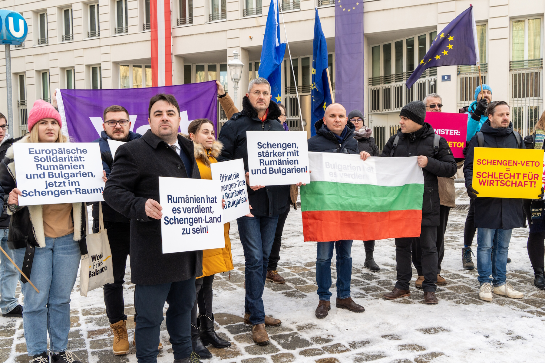 Евродепутатът Илхан Кючюк поведе демонстрация в подкрепа на членството на България и Румъния в Шенген в центъра на Виена.