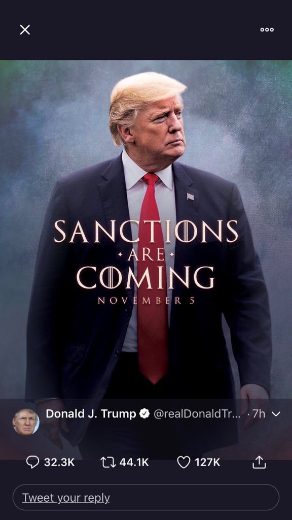 Спорът между Тръмп и Рохани завладя и потребителите в социалните мрежи и се пренеси в реалността на сериала „Игра на тронове“. Причината за това стана самият Доналд Тръмп, който публикува своя снимка с надпис: „Санкциите идват“. Така той използва отличителната фраза от сериала на HBO „Зимата идва“.
