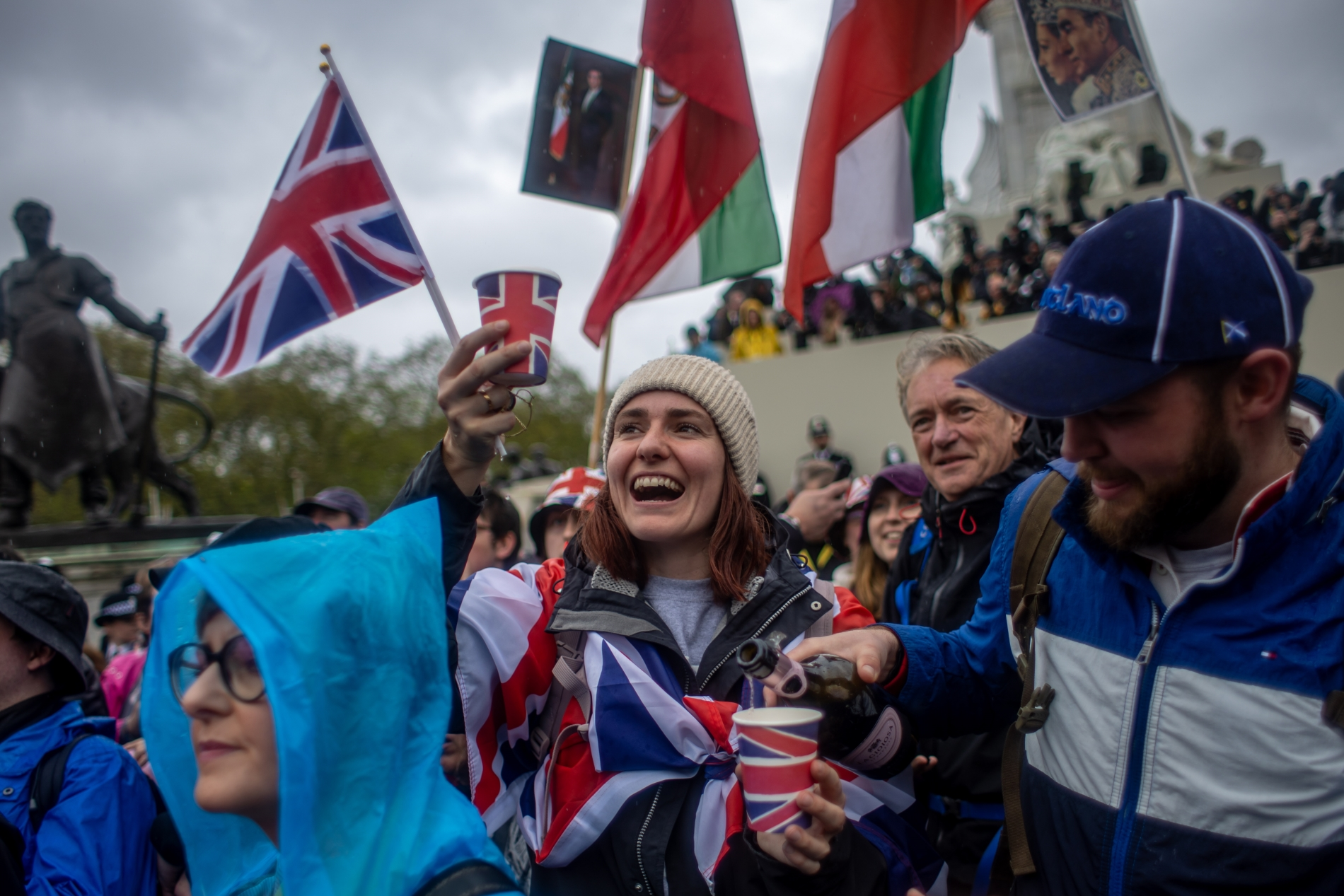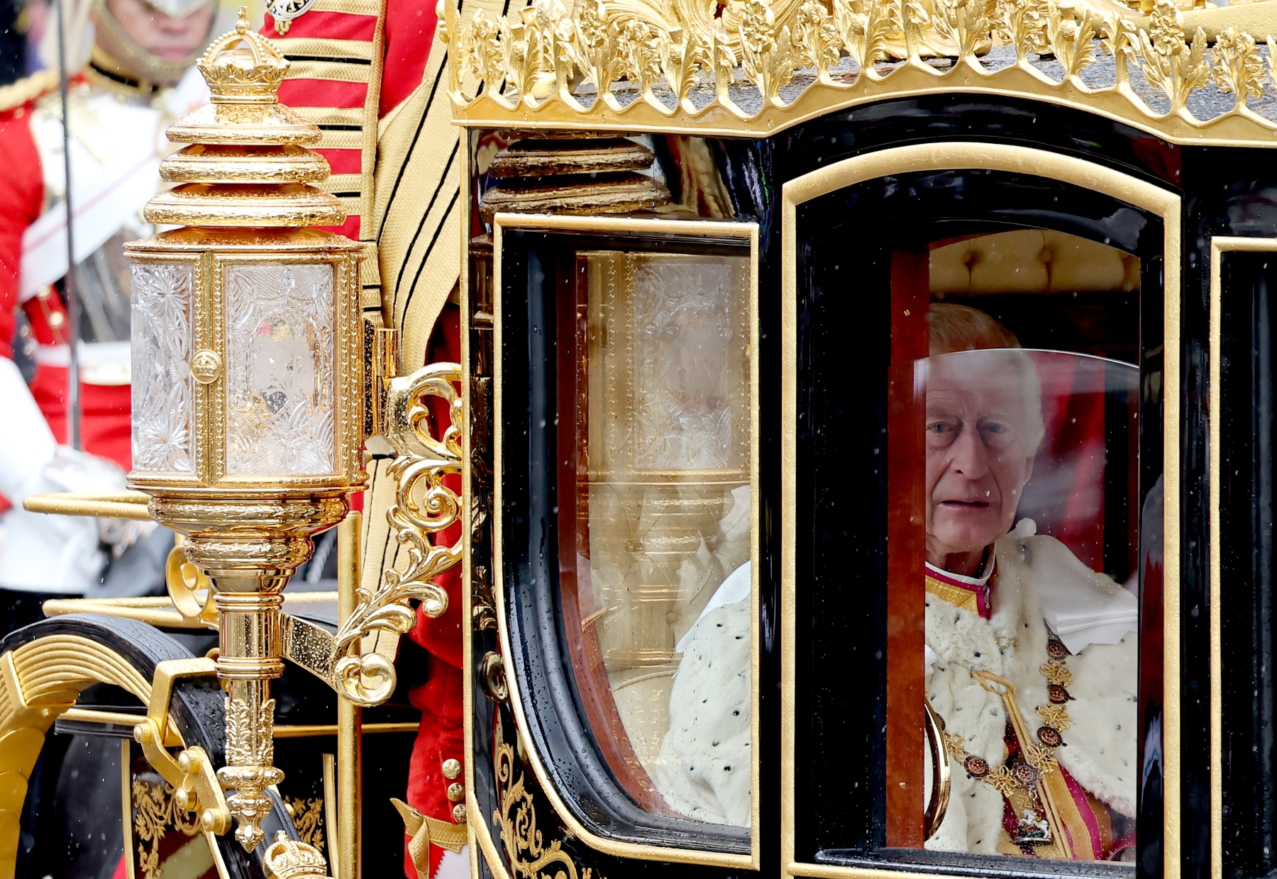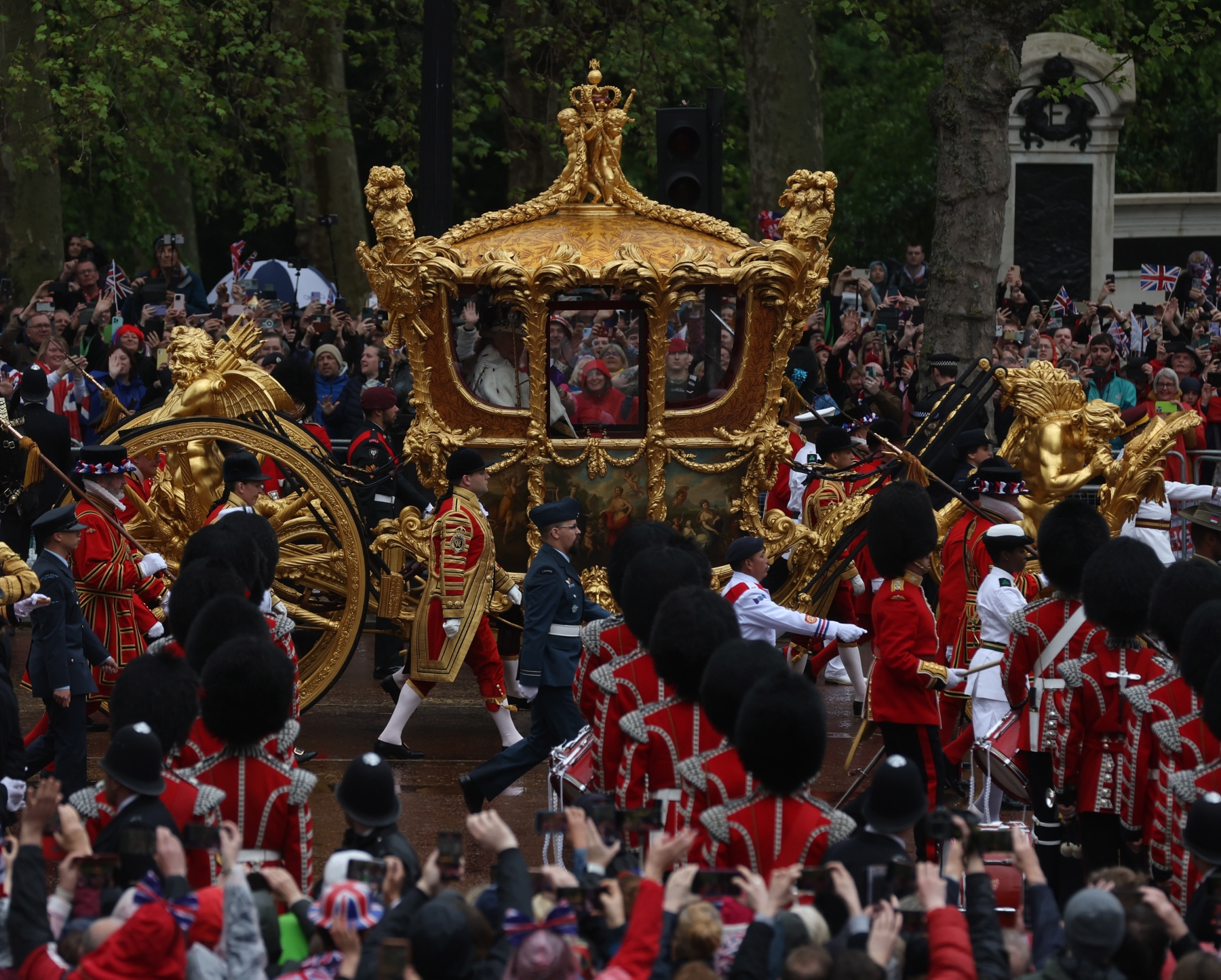 Историческият ден започна с Кралска процесия. Кралят и кралицата пристигнаха с каляска в Уестминстърското абатство от Бъкингамския дворец. Процесията бе почти 2 километра. Монарсите преминаха пред погледите на тълпи британци и милиони пред екраните.