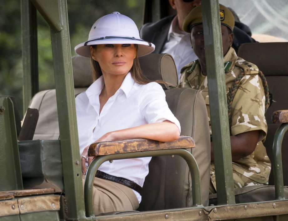 Считана за модна икона, първата дама бе разкритикувана и за избора си на шапка, която носеше в Найроби. В социалните мрежи се появиха постове, че „шлемът“ на Мелания напомня за колонизаторите на Африка.