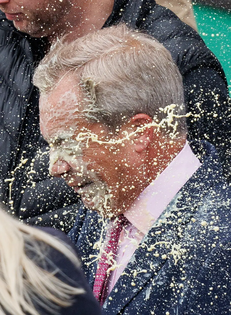 Британският политик Найджъл Фараж беше залят с млечен шейк на старта на предизборна кампания в Клактън, графство Есекс. Полицията е арестувала 25-годишна жена, която по-късно британските медии разпознаха като еротичният модел на OnlyFans Виктория Томас-Боуен. По случая е задържан и мъж, който се твърди, че е нападнал полицай. Фараж определи инцидента като „доста плашещ“ и добави, че е станал мишена, защото „излиза и се среща с обществеността“