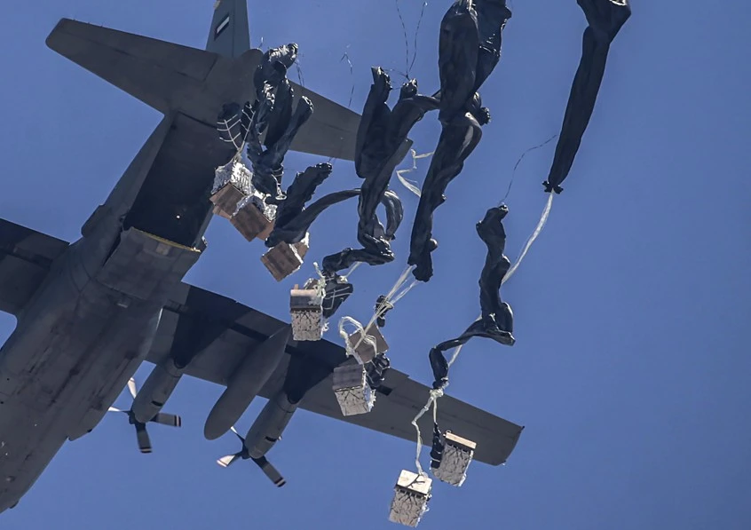 Консерви боб и нахут, спагети, брашно и сол. Това съдържат пакетите хуманитарна помощ, които се доставят по въздуха в Газа, и на които хората там разчитат за да оцелеят в условията на разрастващ се глад. Казват, че децата им са забравили вкуса на яйца, месо или плодове. И негодуват срещу доставките с парашут.