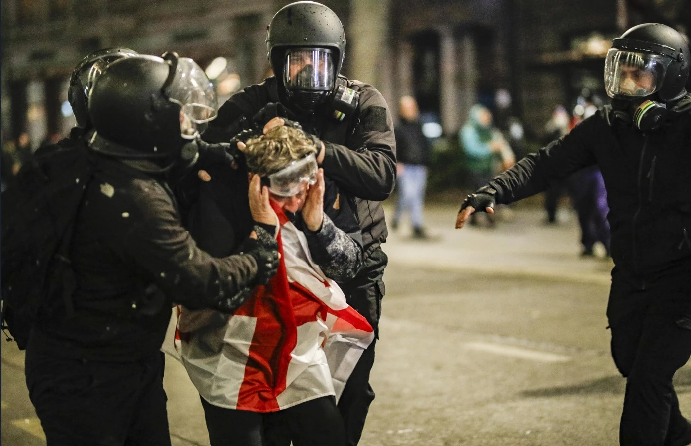 Пета поредна тежка нощ на протести и арести в Грузия. Залогът е ориентацията на страната, след решението на управляващата партия „Грузинска мечта“ да замрази преговорите за присъединяване към ЕС до 2028 г.
