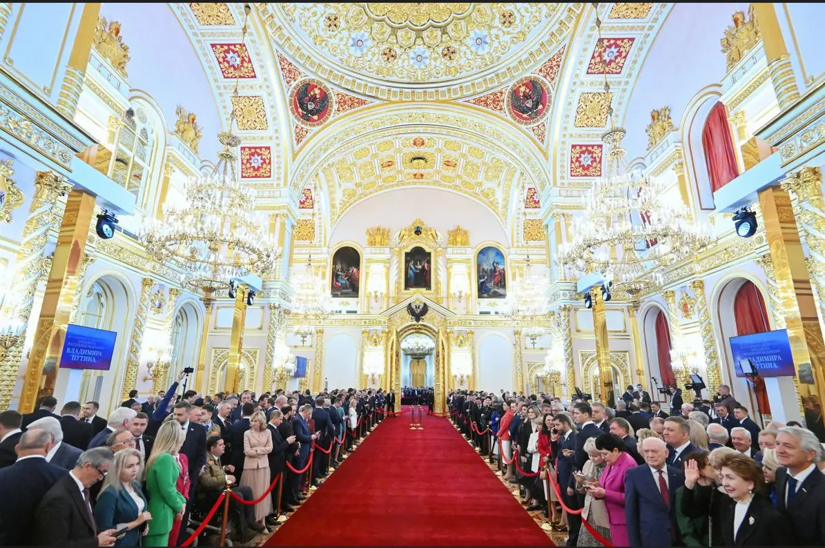 „Да служиш на Русия е огромна чест и отговорност“, подчерта 71-годишният политик в позлатената Андреевска зала на Кремъл.