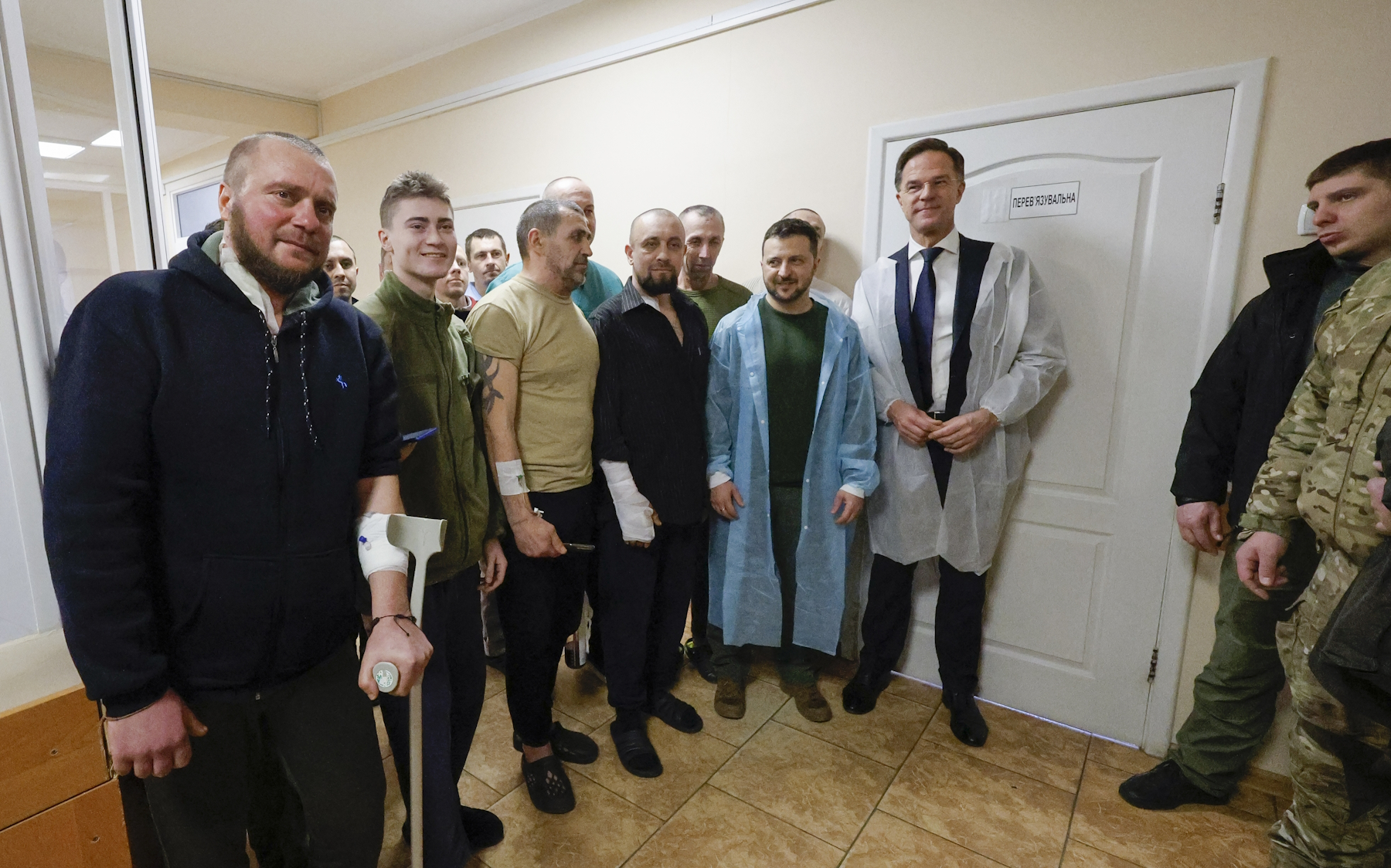 In Kharkiv today, Dutch @MinPres Mark Rutte and I paid a visit to wounded Ukrainian defenders undergoing treatment.