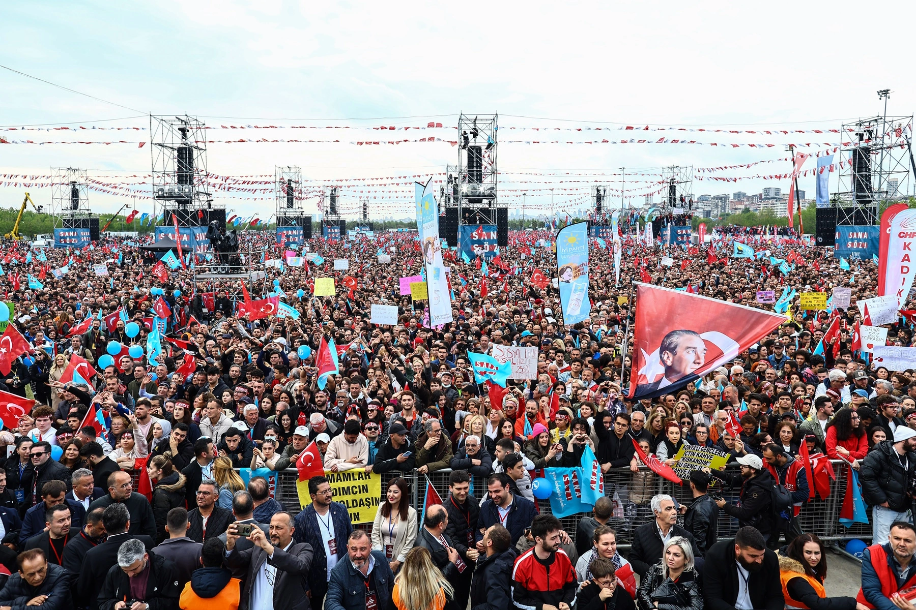 Стотици хиляди хора се събраха в най-големия парк Орхангази в Малтепе на азиатския бряг на Истанбул за предизборния митинг на опозиционния Национален алианс, който се проведе под наслов „Голямата среща с народа“, предаде БТА.