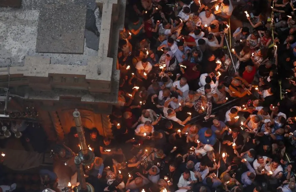 На Велика събота в навечерието на Великден Благодатният огън слезе в църквата „Възкресение Христово“ в Йерусалим.