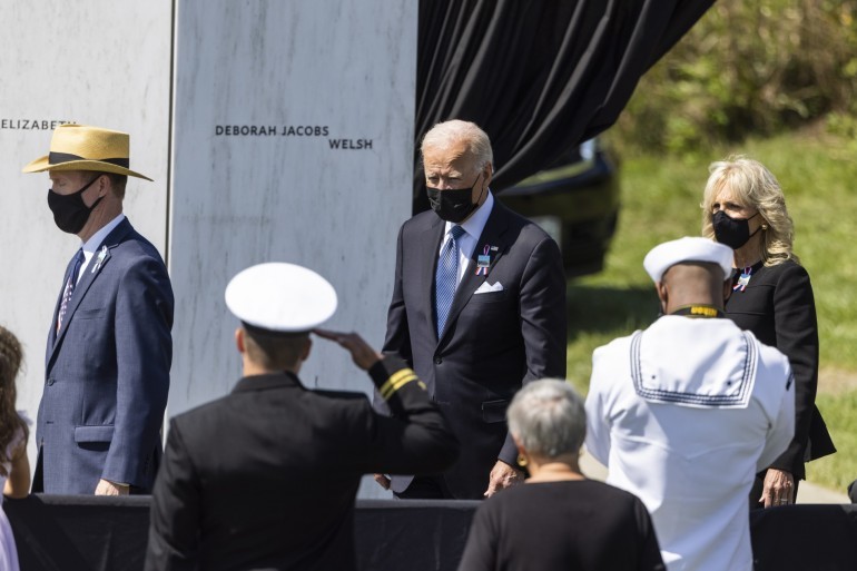 На мемориала в Ню Йорк към президентът Джо Байдън и първата дама Джил Байдън се присъединиха бившите президенти Бил Клинтън и Барак Обама, както и бившите първи дами Хилари Клинтън и Мишел Обама.