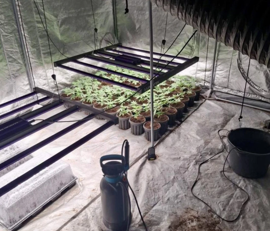 На етаж от еднофамилна къща е установено високотехнологично оборудвано помещение за отглеждане на растения от рода на конопа и за производство на марихуана.