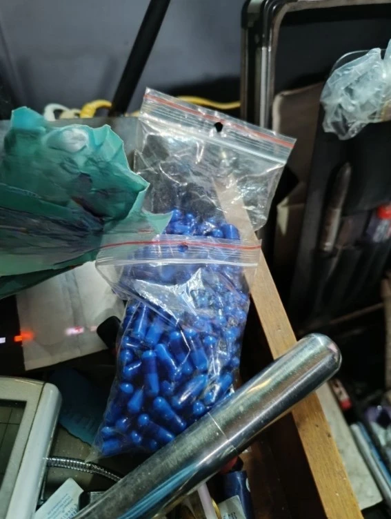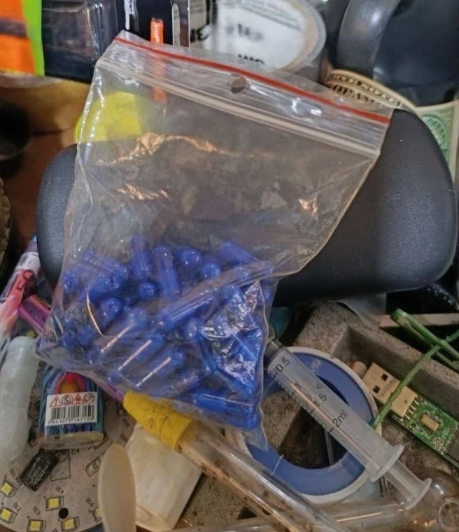 Няколко часа по-късно от полицаи от Трето РУ е арестуван 45-годишен мъж. При спроцесуално-следствени действия на адрес в района на Женския пазар са намерени и иззети около 20 грама кристали, 120 дози метаамфетамин, 2 грама тревиста маса, два спейсбека със сини хапчета, прекурсор за производство на метамфетамин, 4 електронни цигари тип вейп и 6 пълнителя за вейпове.