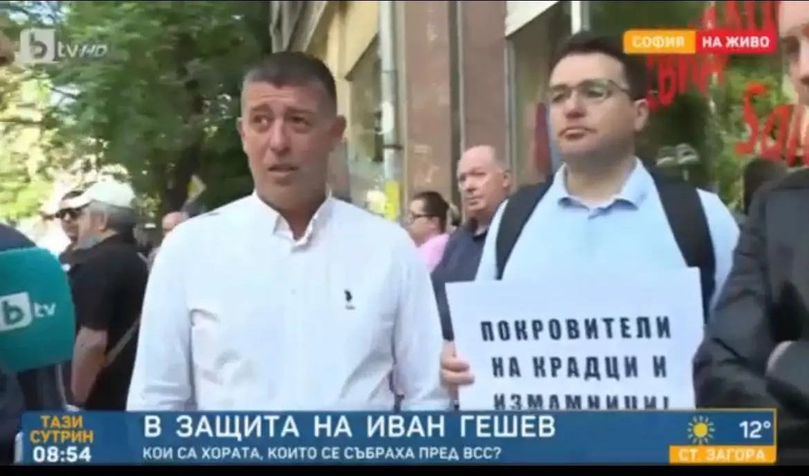 На протеста пред ВСС Стоил Рошкев също направи политически коментар, намесвайки „барбекюто в посолството на САЩ“. Плътно до него в защита на Иван Гешев бяха Тодор Беленски, който протестира срещу приемането на еврото заедно с „Възраждане“, както и червения активист на Корнелия Нинова – Страхил Ангелов. В своя Фейсбук Ангелов откровено защитава Русия във войната й срещу Украйна, нападайки САЩ и ЕС. „САЩ и Европа явно не са наред и още си мислят, че те решават нещо…Русия и съюзниците ще победят…Ние сме с Урсула и Байдън, които ни „подкрепяли“ в тези трудни време. Смях в залата…“, пише той през юли 2022 година.