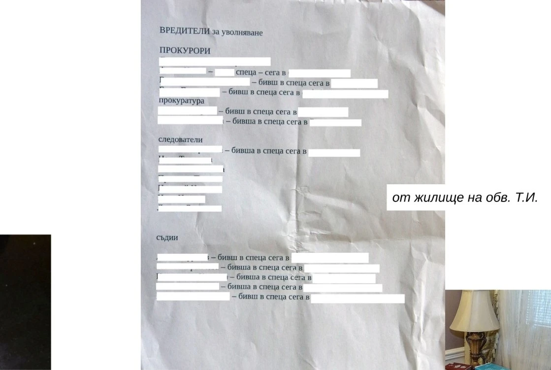 „Вредители за уволнение” - списък с имена на прокурори, съдии и следователи е бил открит в дома на обвиняем за участие в престъпна група за изнудване и притежание на наркотици с цел разпространение.