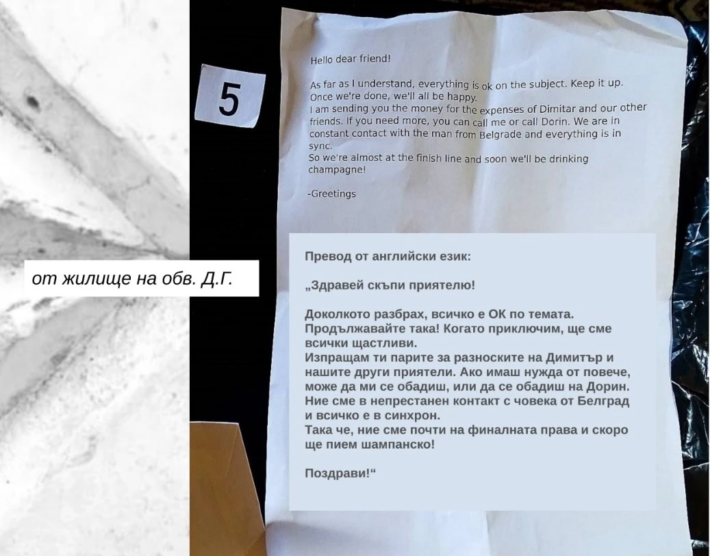 Вторият участник - Д. Г. е с повдигнато обвинение за притежание на наркотици с цел разпространение. Той е в ареста и предстои въззивно производство пред Софийския апелативен съд. Той е осъждан за хулиганство, нанасяне на средна телесна повреда, участие в организирана престъпна група с опит измама. В началото на март, в дома му са намерени листа хартия с ръкописен текст, на който личи абревиатурата ВТБ и напечатан текст на английски (преводът е на прокуратурата):
