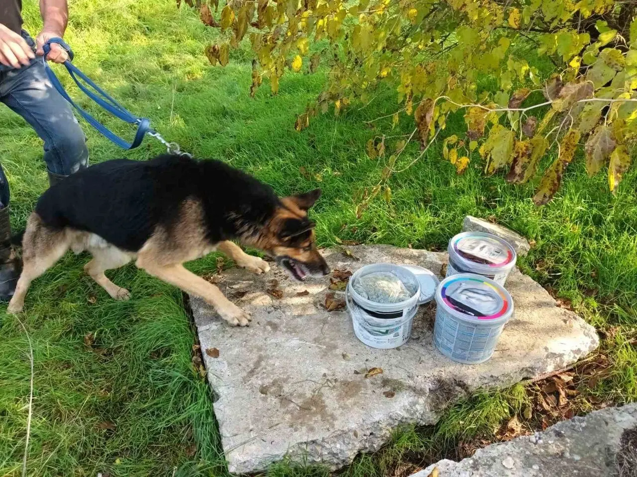 Джино бързо успял да насочи екипите към място, където в пластмасови контейнери били открити около 600 г амфетамин и килограм марихуана, както и електронни везни.