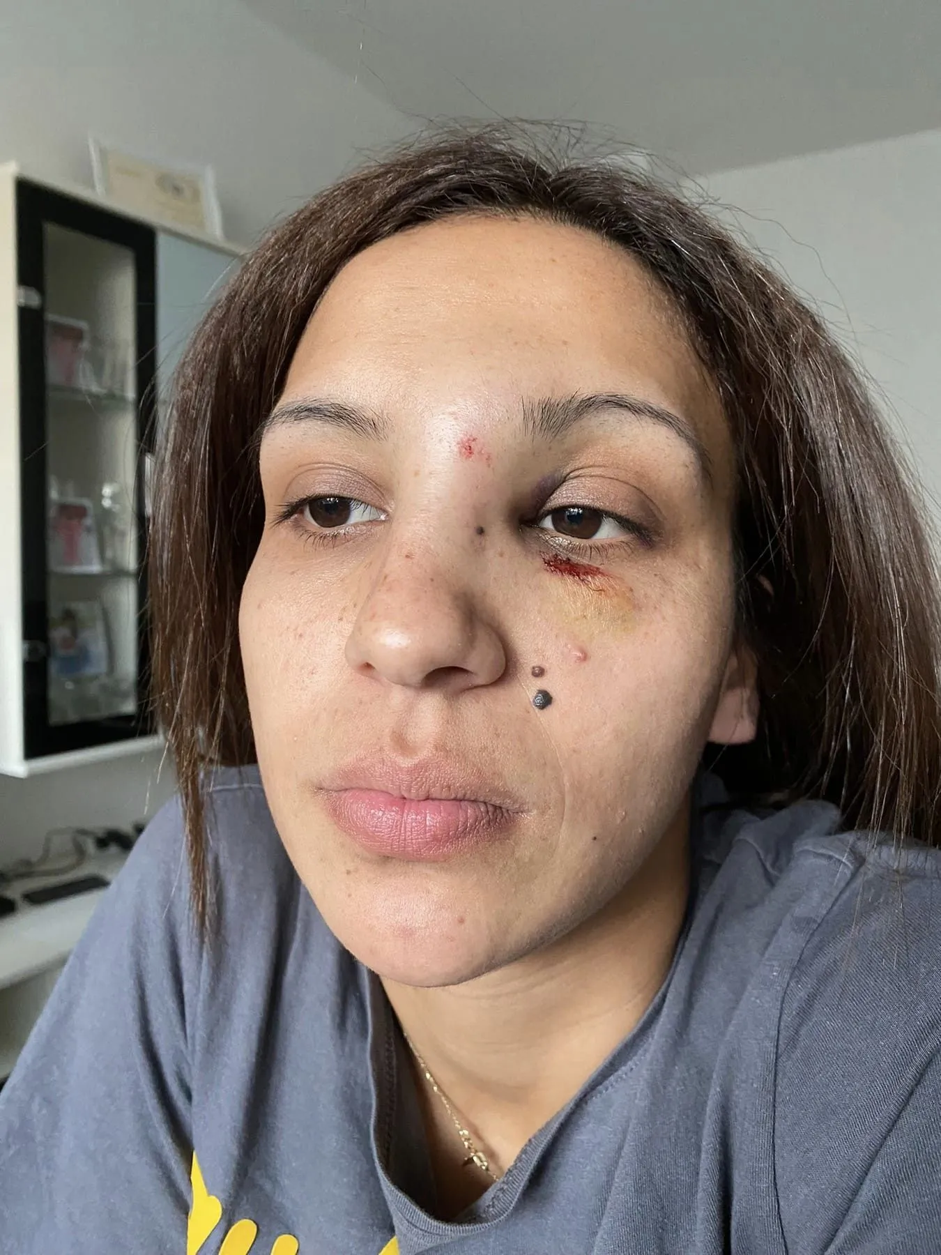 „...започна един жесток побой и то в присъствието на детето. Последствията от побоя са счупен нос, фрактура на черепа, синини и отоци по цялото тяло“, написа още жената.